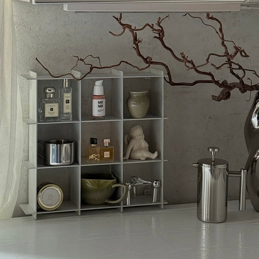 Compact, clean, and endlessly functional, the Stello Countertop Grid Shelf is a modern storage essential for coffee lovers and design enthusiasts. With nine open cubbies framed in brushed stainless steel, it strikes the perfect balance between display and organization. Whether holding espresso tools, mugs, decor, or curated essentials, this minimalist unit elevates any setup with quiet precision and modular charm.
